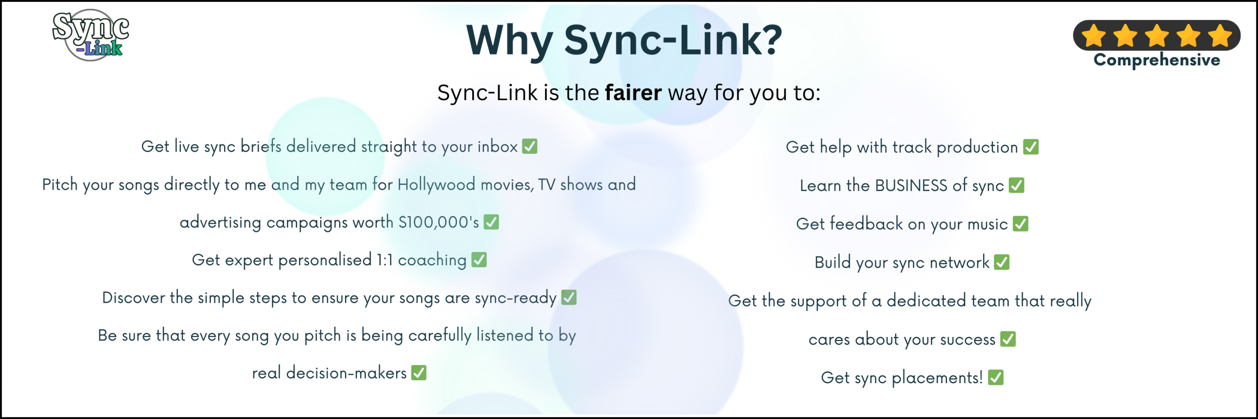 If you have a Sync-Link Plus or Pro subscription you can ask us for feedback on songs that you’ve pitched, or songs that you’re still working on. We’ll come back to you with an audio recording of a detailed breakdown of your music and how to maximise its chances of being placed in sync.